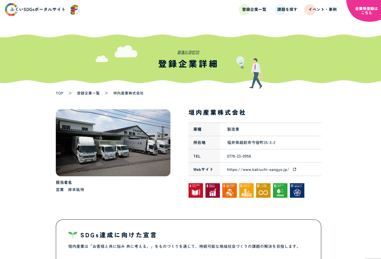 『ふくいSDGsポータルサイト』に企業登録しました。
